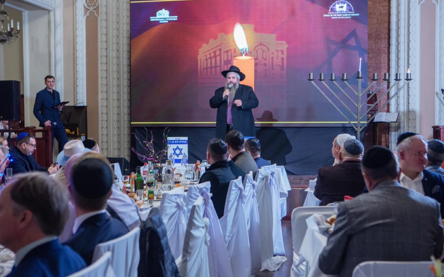 Председатель правления областной еврейской общины Леонид Мильман рассказал об истории и традициях Хануки, ее символической связи со временем, в котором сейчас живут украинцы. Главный раввин Черновицкой области Менахем Мендл Глицнштейн провел совместную молитву за скорейшее наступление Победы добра и мира в Украине и во всем мире, и вместе с председателем ОВА Р. Запаранюком зажгли первую свечу на большой черновицкой Ханукии.